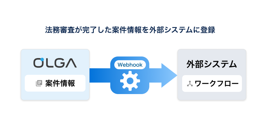 本機能により、「OLGA」上の案件ステータスが変更された際、ユーザー企業が日常的に利用している他のシステムへ、自動で通知することが可能になります。