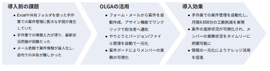 今回は、非効率な状況を打破するために「OLGA」を導入するに至った背景や、導入後に実現した改善効果について詳しく伺います。