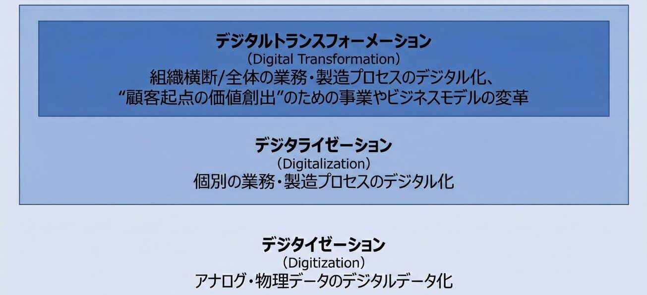 デジタイゼーション → デジタライゼーション → DX(デジタルトランスフォーメーション)